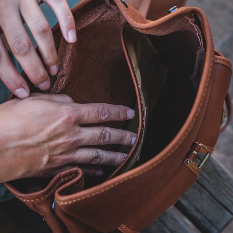 Our minimalist Larzac leather backpack is ideal for students or digital nomads. Its rectangular shape is designed to carry a 17" laptop.