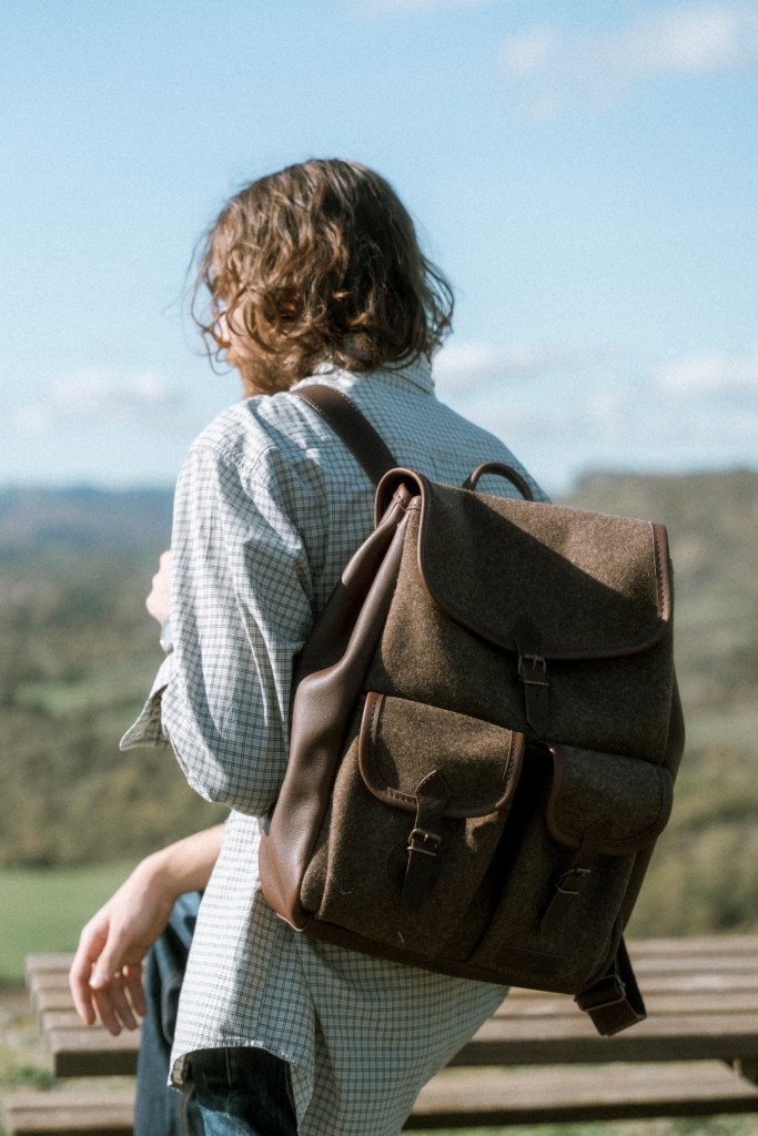 Our leather backpack Minimalist Larzac Wool and Leather is ideal for students or digital nomads. Its rectangular shape is designed to carry a 17" laptop. It also has the advantage, thanks to its different closures, of being able to store different objects in different places. This leather backpack features :