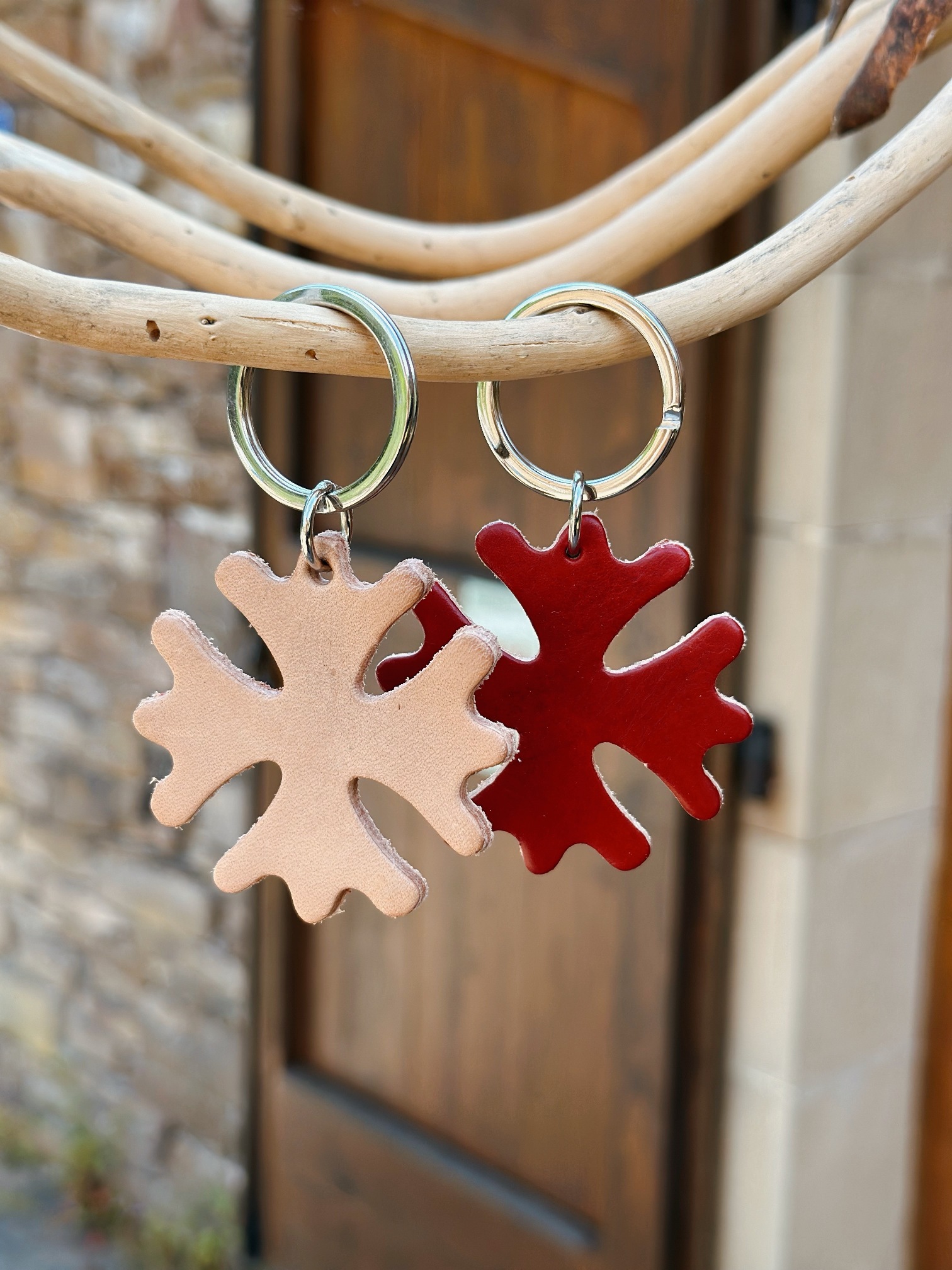Our Occitan cross key ring is made from thick, full-grain cowhide.