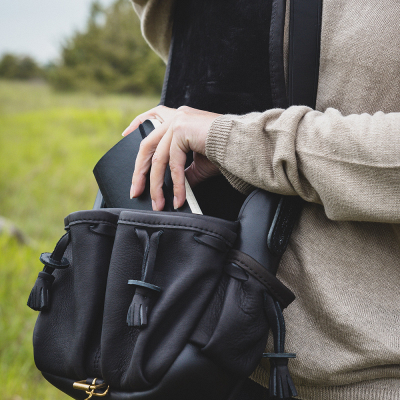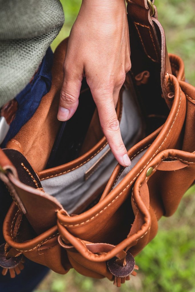 - Inside, another pocket on the back and one on the front, in undyed cotton + linen canvas.