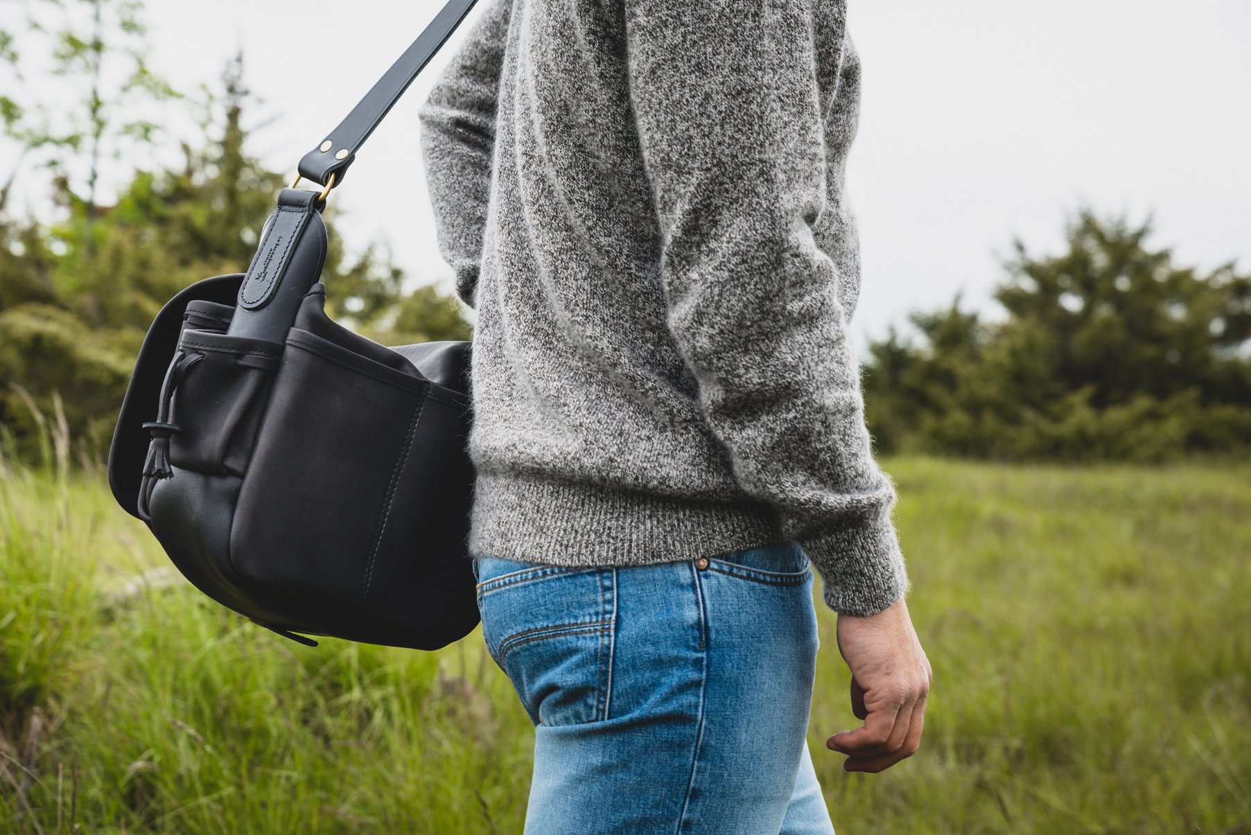 The leather shoulder bag for men