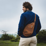Cette pochette est inspirée par les vignes des côteaux de Millau. Elle permettait d’y loger une bouteille d’eau. Elle peut être portée en bandoulière, sur le dos, ou façon banane autour de la taille.