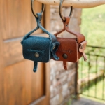 Notre porte-clés Sac du Berger est fabriqué à partir de cuir de vachette pleine fleur épais. Le rabat se ferme à l’aide d’un bouton pression en métal coloris bronze. A l’intérieur, vous pouvez glisser quelques pièces, un jeton ou tout autre petit trésor.