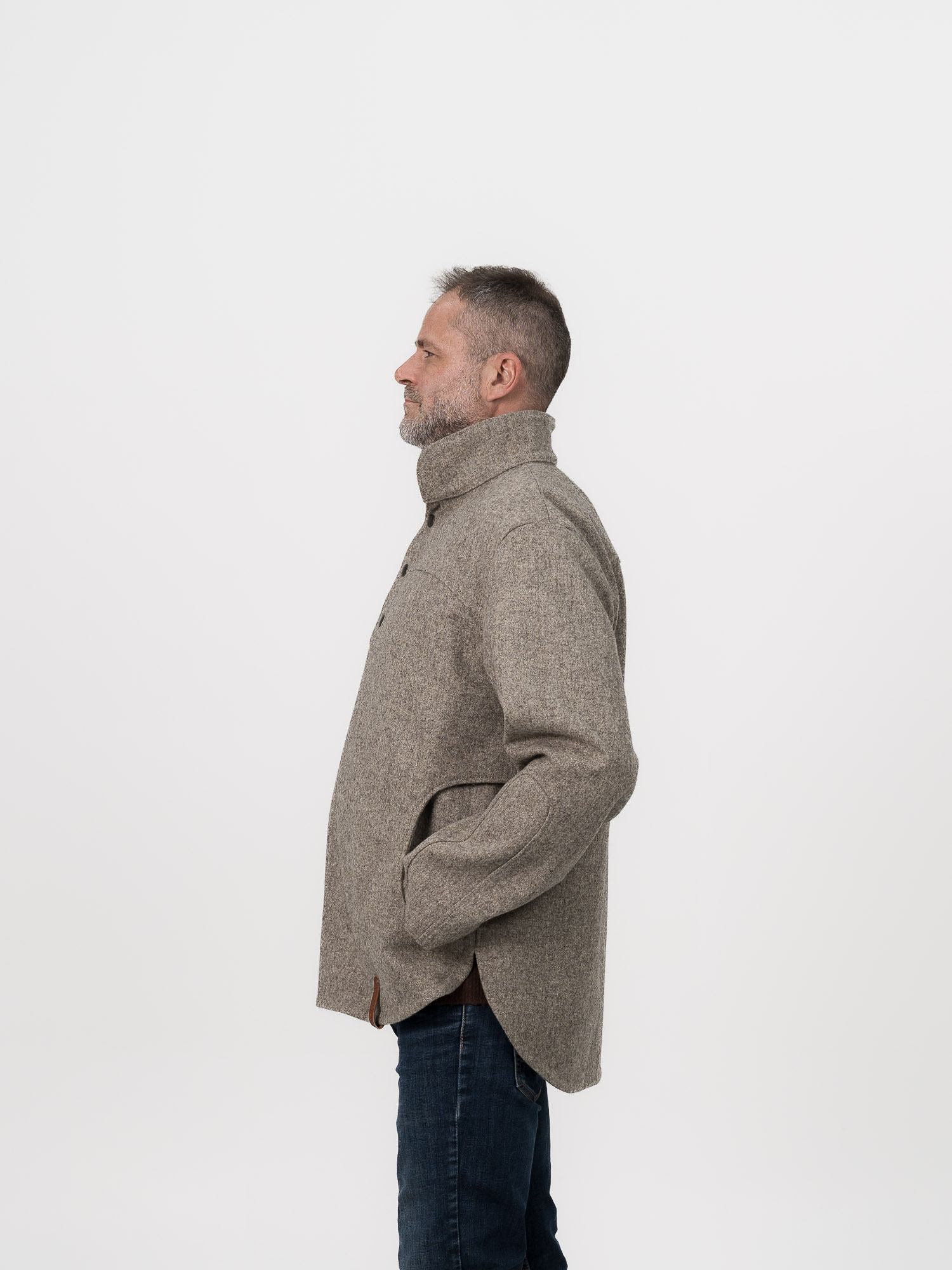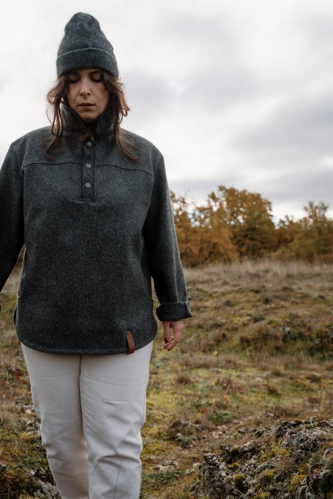 La vareuse, vêtement emblématique du berger des collines provençales, renaît ici dans une version épurée et chaleureuse. Avec sa coupe mi longue et sa laine légère mais résistante, elle allie praticité et confort. Ses boutons pression sur le devant et ses finitions soignées en font une pièce polyvalente, idéale pour les saisons intermédiaires.