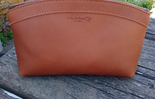 La trousse à maquillage en cuir artisanal Petite trousse en cuir vachette pleine fleur, à
